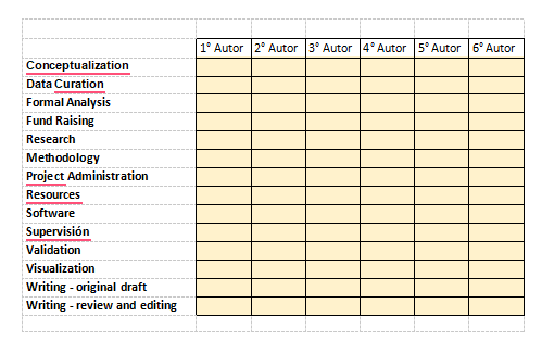 Contribución de los autores - CRediT. Cada autor deberá indicar su rol especifico en la contribución del manuscrito presentado a publicarse.